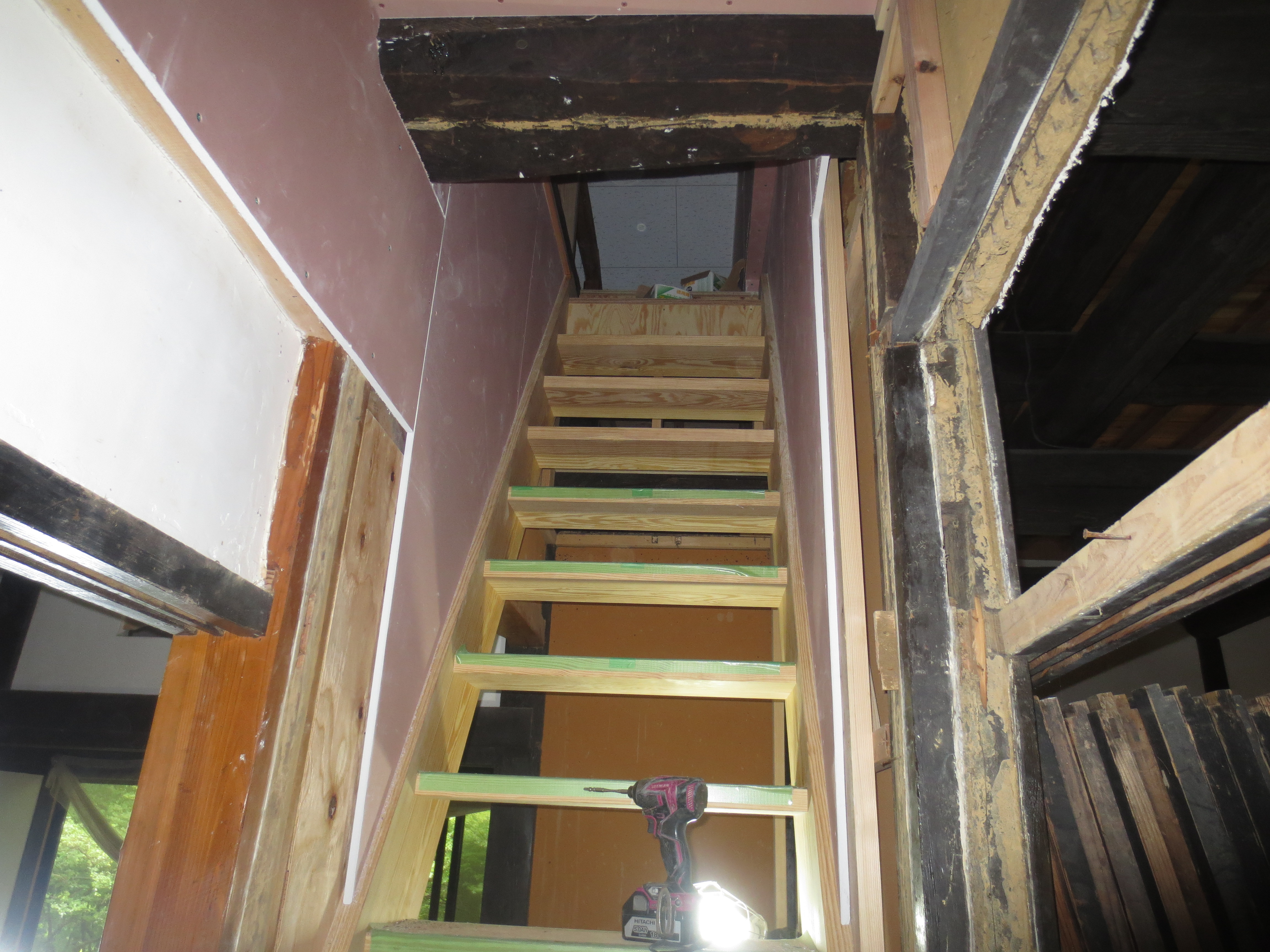 ロフトへの階段工事進行中ですが、廻りの復旧も色々問題がありそうです。
