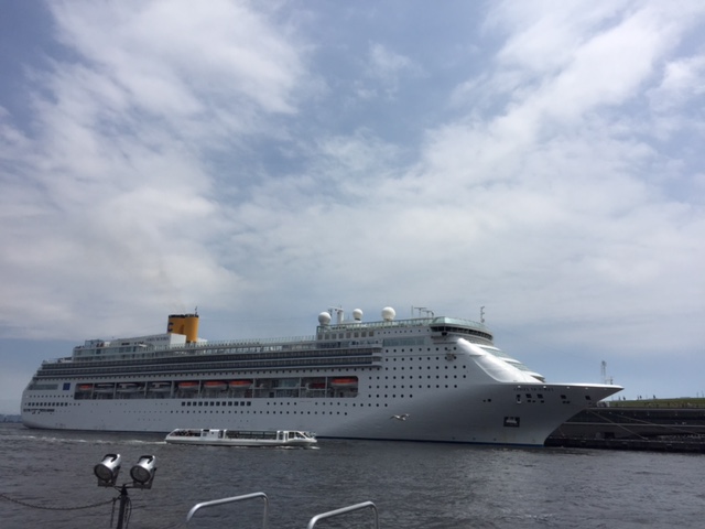 ( 大きな船の下に写っているのが、私が乗ったフェリーです。 )