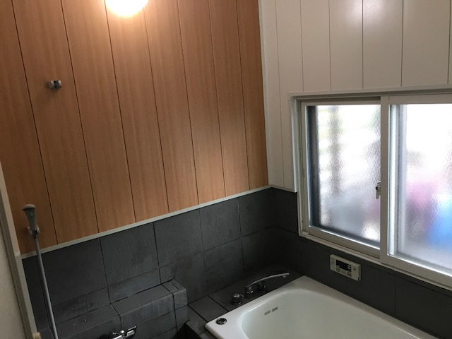 既存桧板バスパネル張替え + インプラス工事が完了しました。