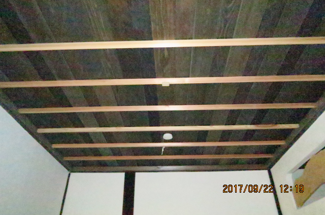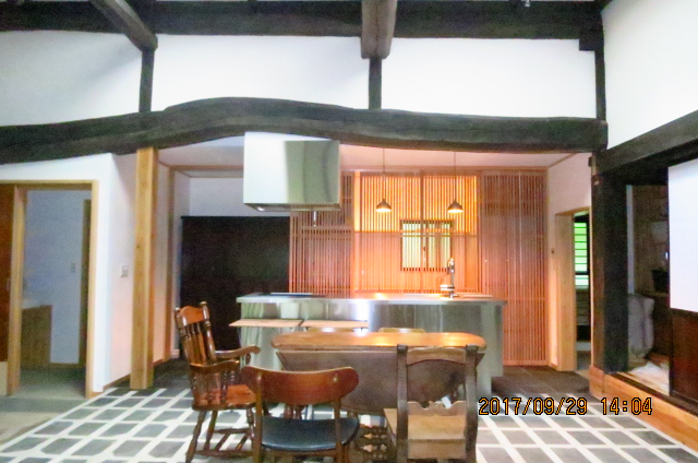 ☆ アイランドキッチンの食堂と厨房 奥にあるのが移動式の4本格子戸