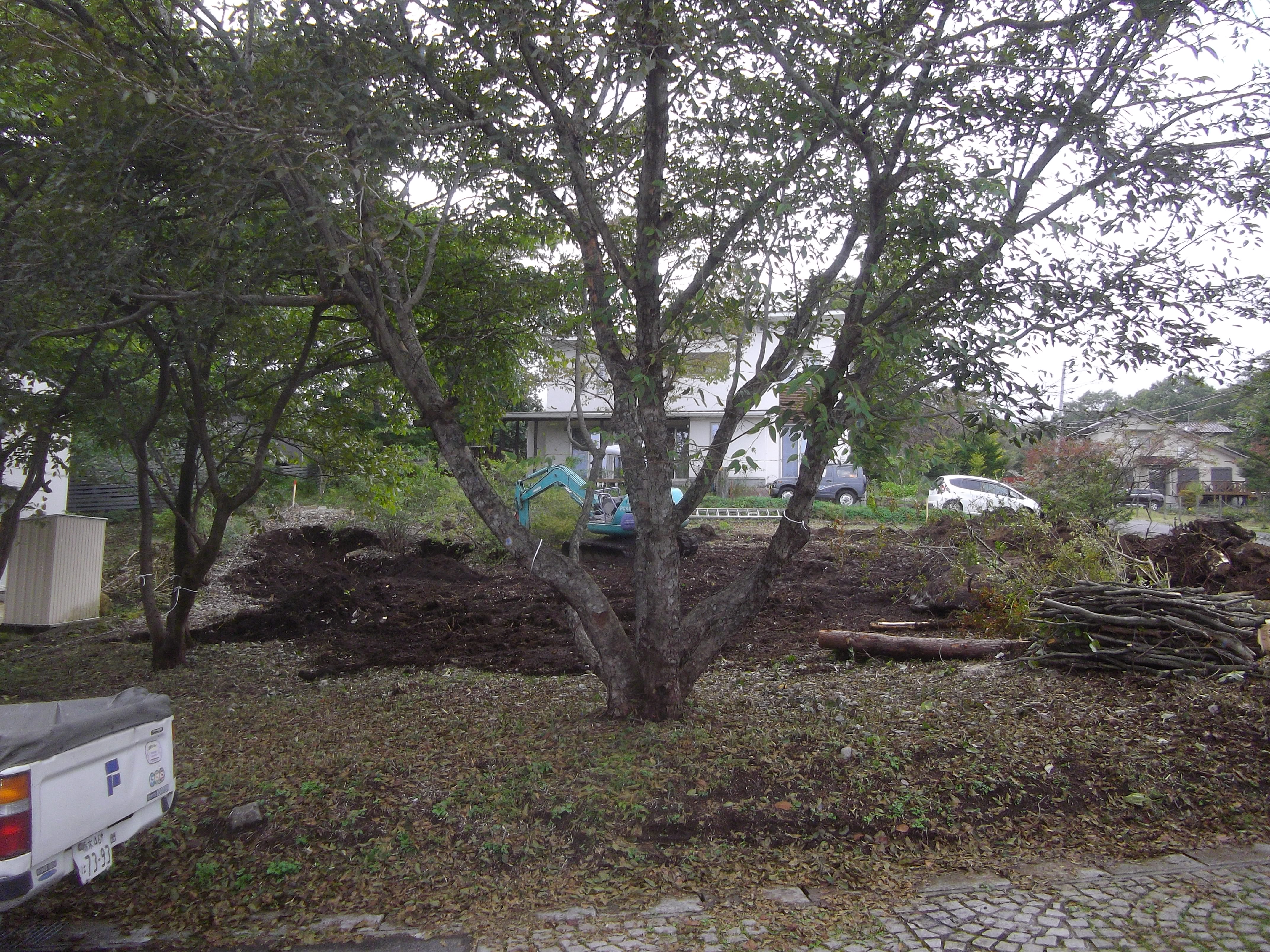 地縄張り ~ 木々の移植移設 ~ 敷地整地 、と工事は進んでおります。