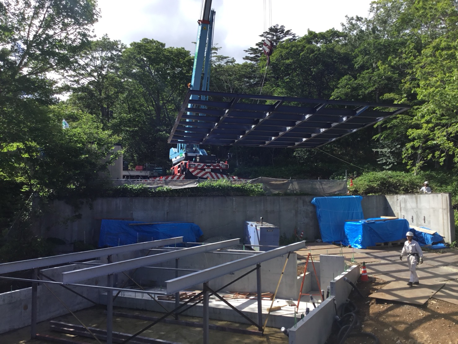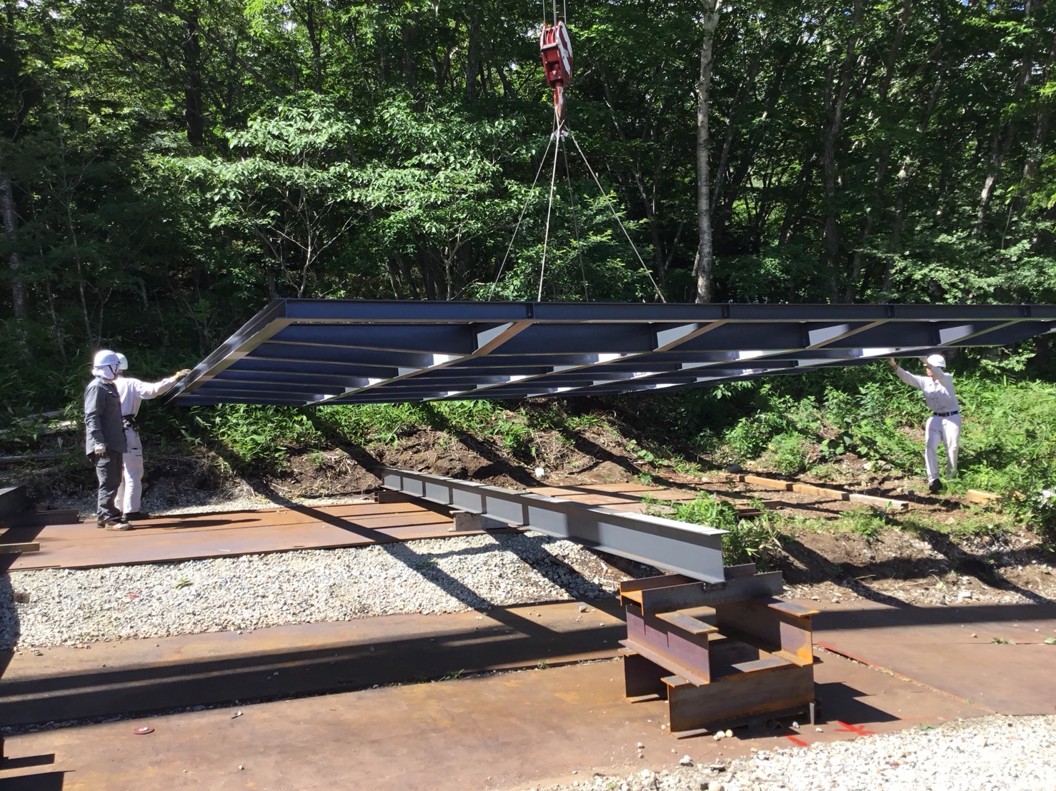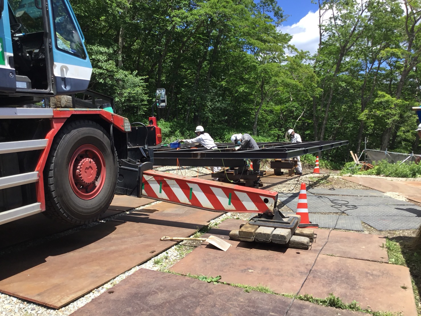 鉄骨架台の組立てが完了し、いよいよ屋根に乗るだけとなりました。