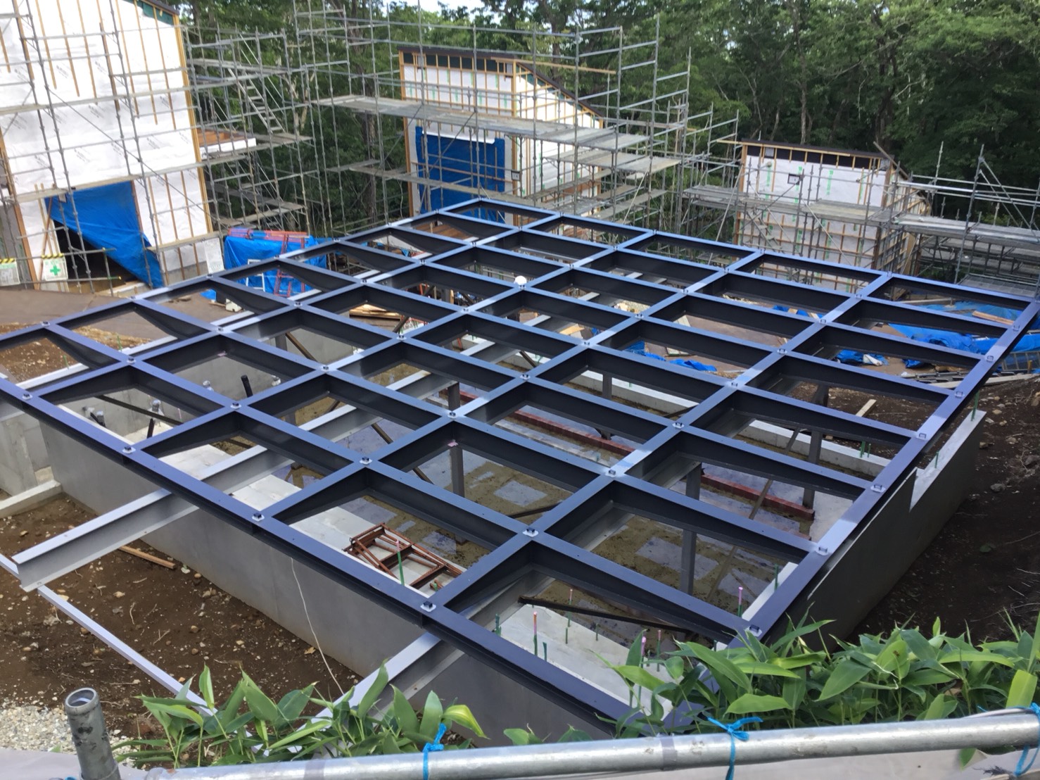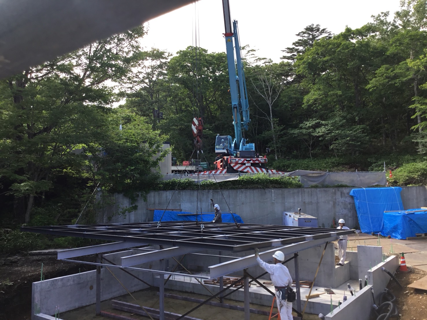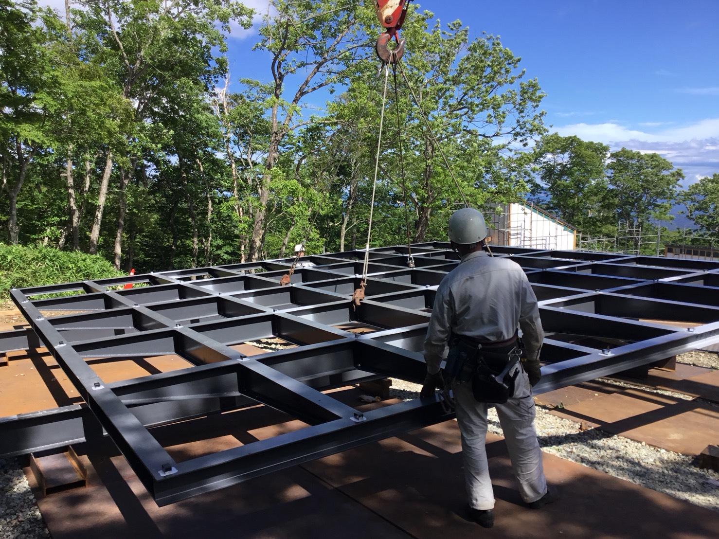 鉄骨架台の組立てが完了し、いよいよ屋根に乗るだけとなりました。