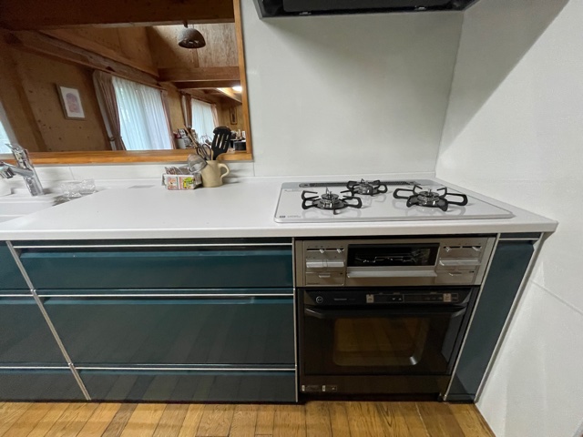 お 料 理 上 手 な 奥 様 が 選 ん だ キ ッ チ ン 、 ブ ル ー グ リ ー ン が お 住 ま い と よ く 合 っ て い ま す 。